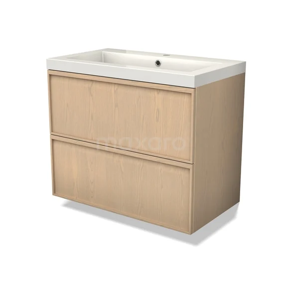 Modulo Plus Bathroom furniture with sink | 80 cm Natural oak Ledge front Mineral marble 2 Stacked drawers