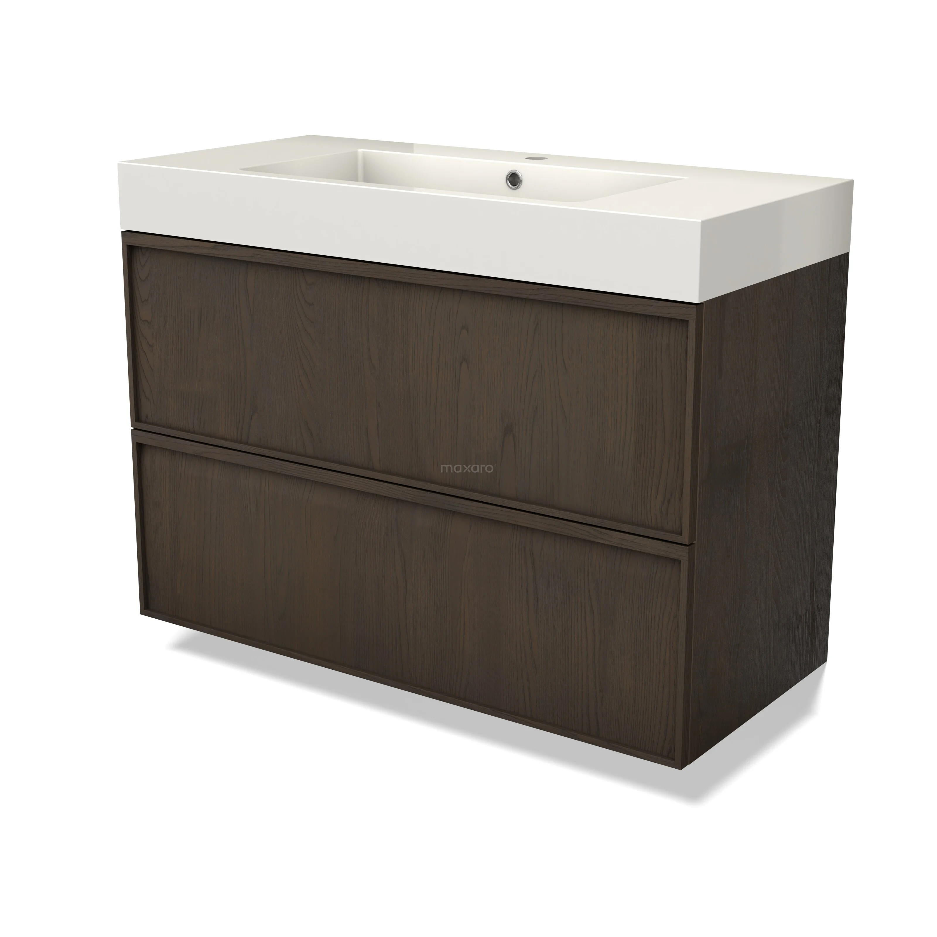 Modulo Plus Bathroom furniture with sink | 100 cm Espresso oak Ledge front Mineral marble 2 Stacked drawers