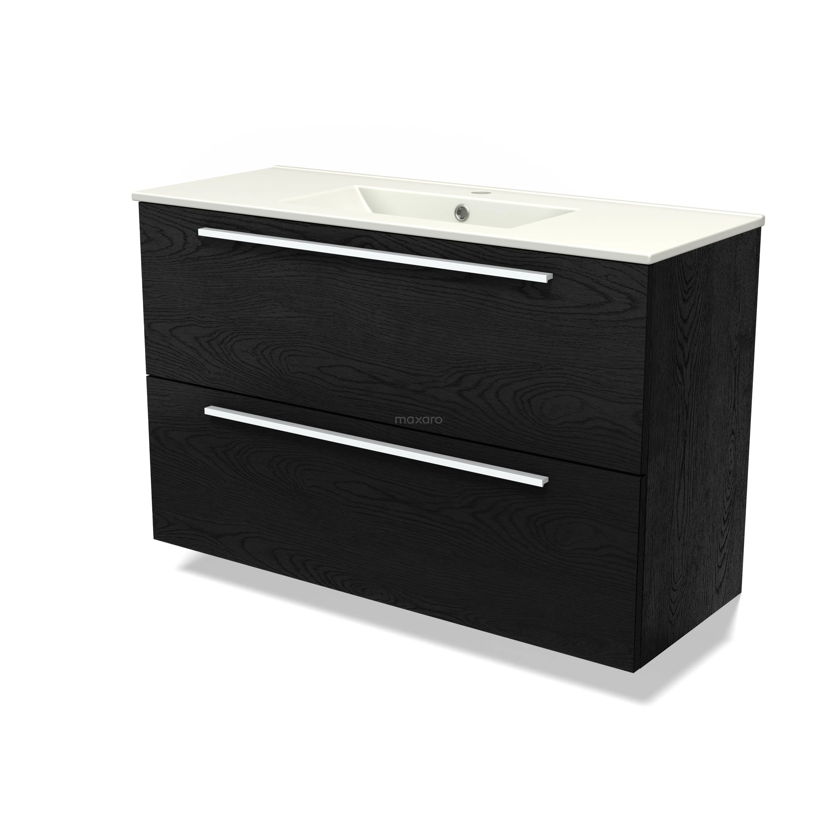 Modulo Slim Bathroom furniture with sink | 100 cm Black oak Flat front Ceramic 2 Stacked drawers