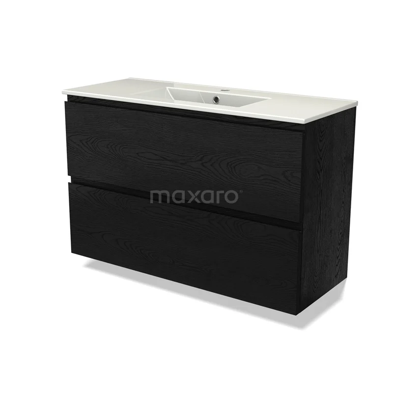 Modulo Slim Bathroom furniture with sink | 100 cm Black oak Handle-less front Ceramic 2 Stacked drawers