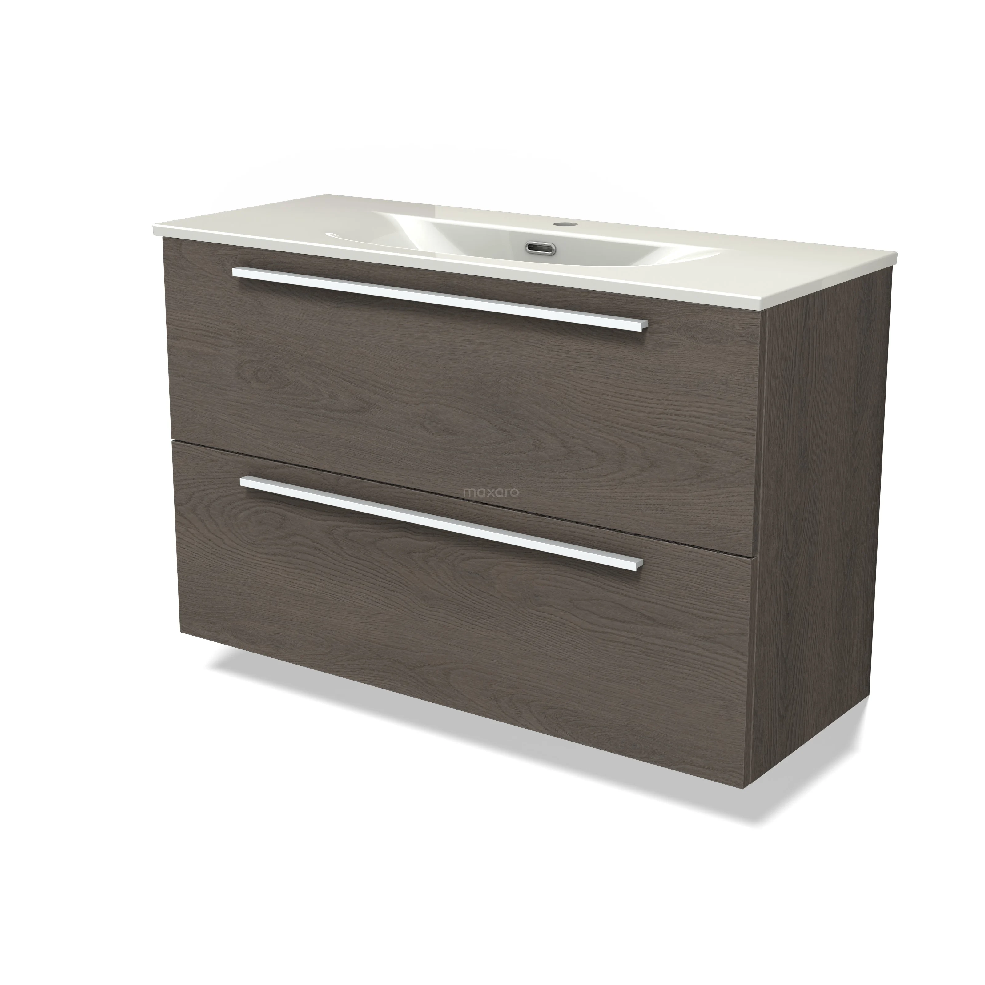 Modulo Slim Bathroom furniture with sink | 100 cm Dark brown oak Flat front Ceramic 2 Stacked drawers