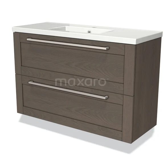 Modulo Slim Bathroom furniture with sink | 100 cm Dark brown oak Frame front Ceramic 2 Stacked drawers
