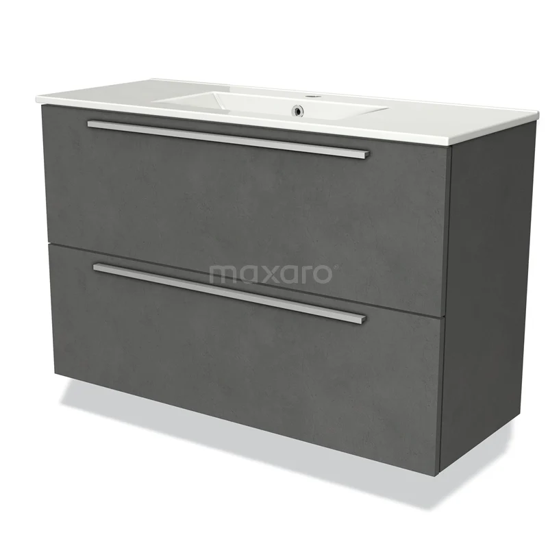 Modulo Slim Bathroom furniture with sink | 100 cm Dark grey concrete Flat front Ceramic 2 Stacked drawers