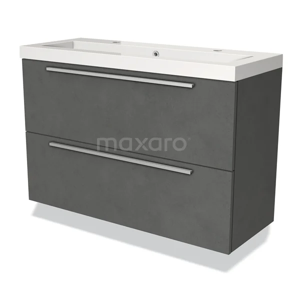 Modulo Slim Bathroom furniture with sink | 100 cm Dark grey concrete Flat front Mineral marble 2 Stacked drawers