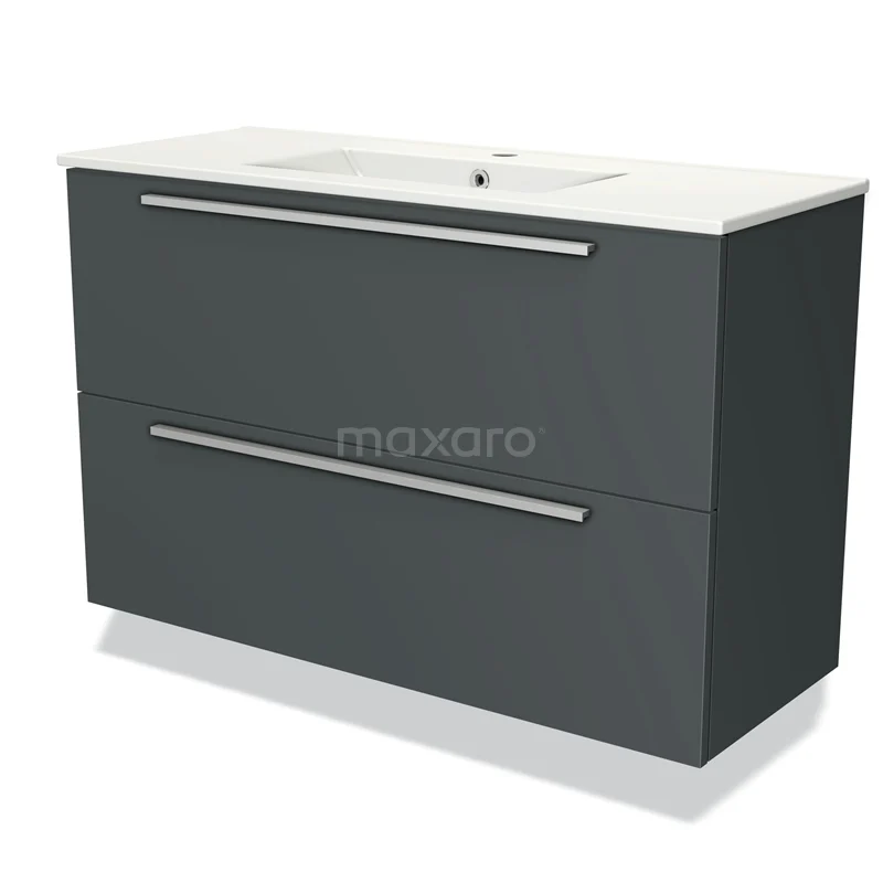 Modulo Slim Bathroom furniture with sink | 100 cm Dark grey Flat front Ceramic 2 Stacked drawers