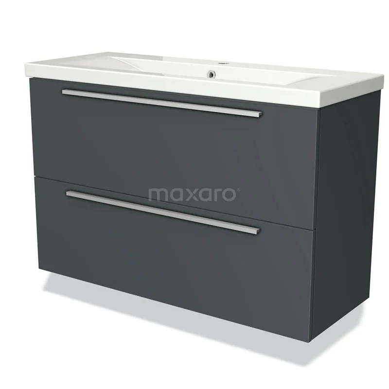 Modulo Slim Bathroom furniture with sink | 100 cm Dark grey Flat front Ceramic 2 Stacked drawers