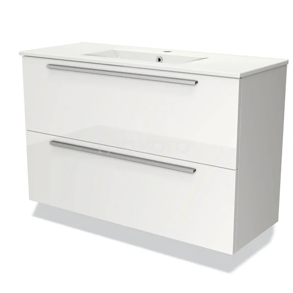 Modulo Slim Bathroom furniture with sink | 100 cm High-gloss white Flat front Ceramic 2 Stacked drawers