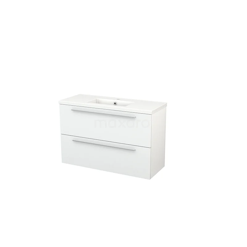 Modulo+ Slim Bathroom furniture with sink | 100 cm High-gloss white Flat front Ceramic 2 Stacked drawers