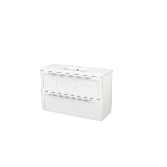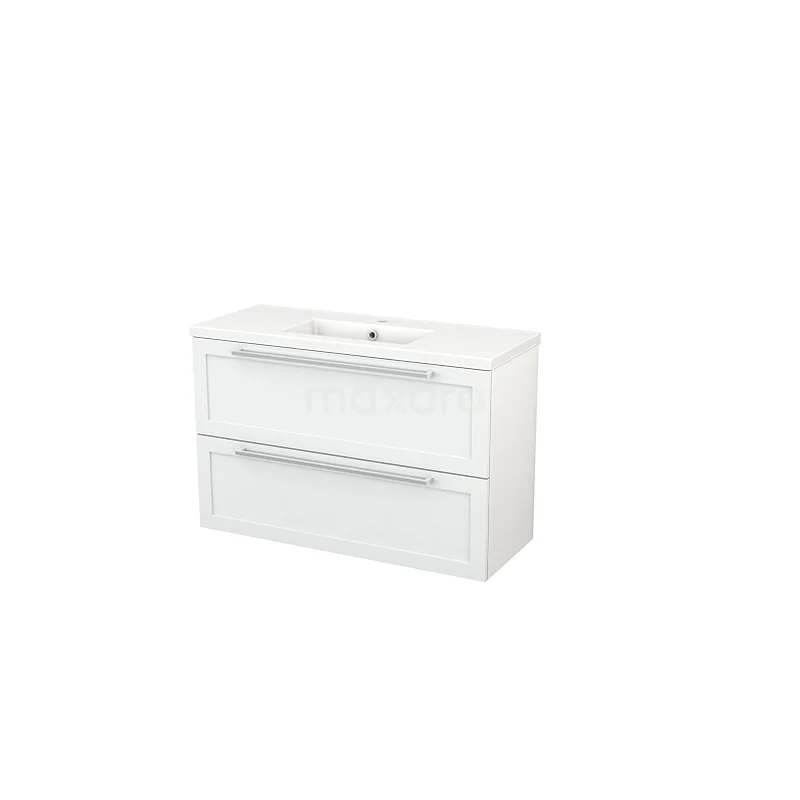 Modulo+ Slim Bathroom furniture with sink | 100 cm High-gloss white Frame front Ceramic 2 Stacked drawers