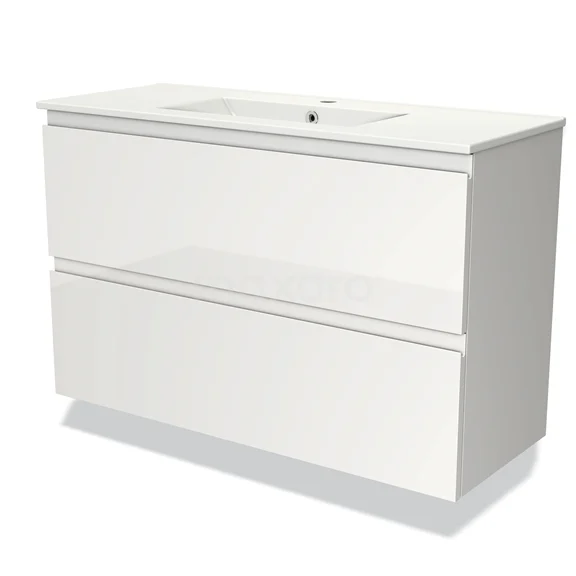 Modulo Slim Bathroom furniture with sink | 100 cm High-gloss white Handle-less front Ceramic 2 Stacked drawers