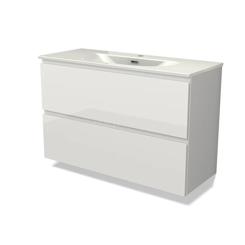 Modulo Slim Bathroom furniture with sink | 100 cm High-gloss white Handle-less front Ceramic 2 Stacked drawers