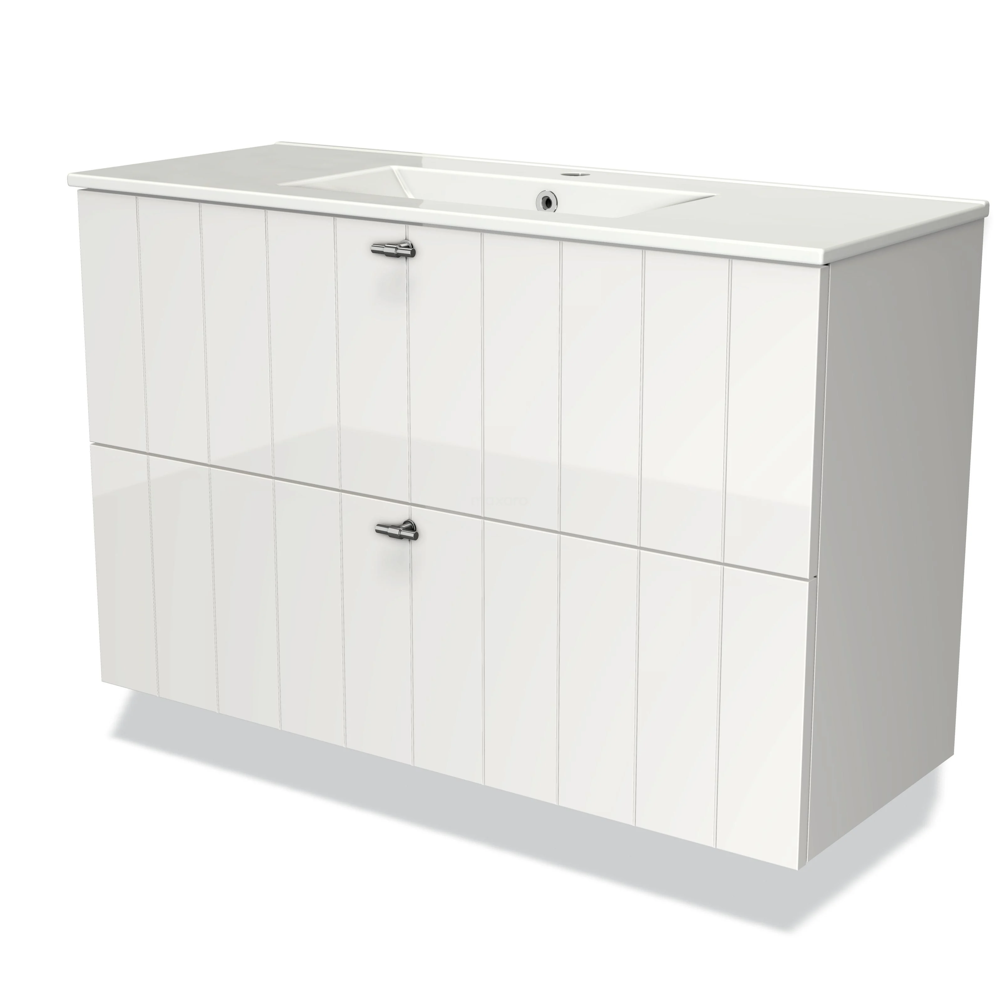 Modulo Slim Bathroom furniture with sink | 100 cm High-gloss white Slat front Ceramic 2 Stacked drawers