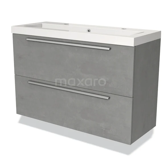 Modulo Slim Bathroom furniture with sink | 100 cm Light grey concrete Flat front Mineral marble 2 Stacked drawers