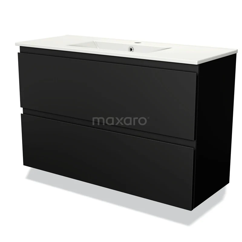 Modulo Slim Bathroom furniture with sink | 100 cm Matte black Handle-less front Ceramic 2 Stacked drawers