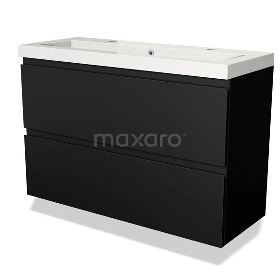 Modulo Slim Bathroom furniture with sink | 100 cm Matte black Handle-less front Mineral marble 2 Stacked drawers