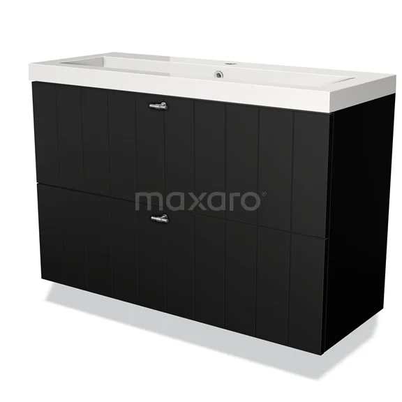 Modulo Slim Bathroom furniture with sink | 100 cm Matte black Slat front Mineral marble 2 Stacked drawers