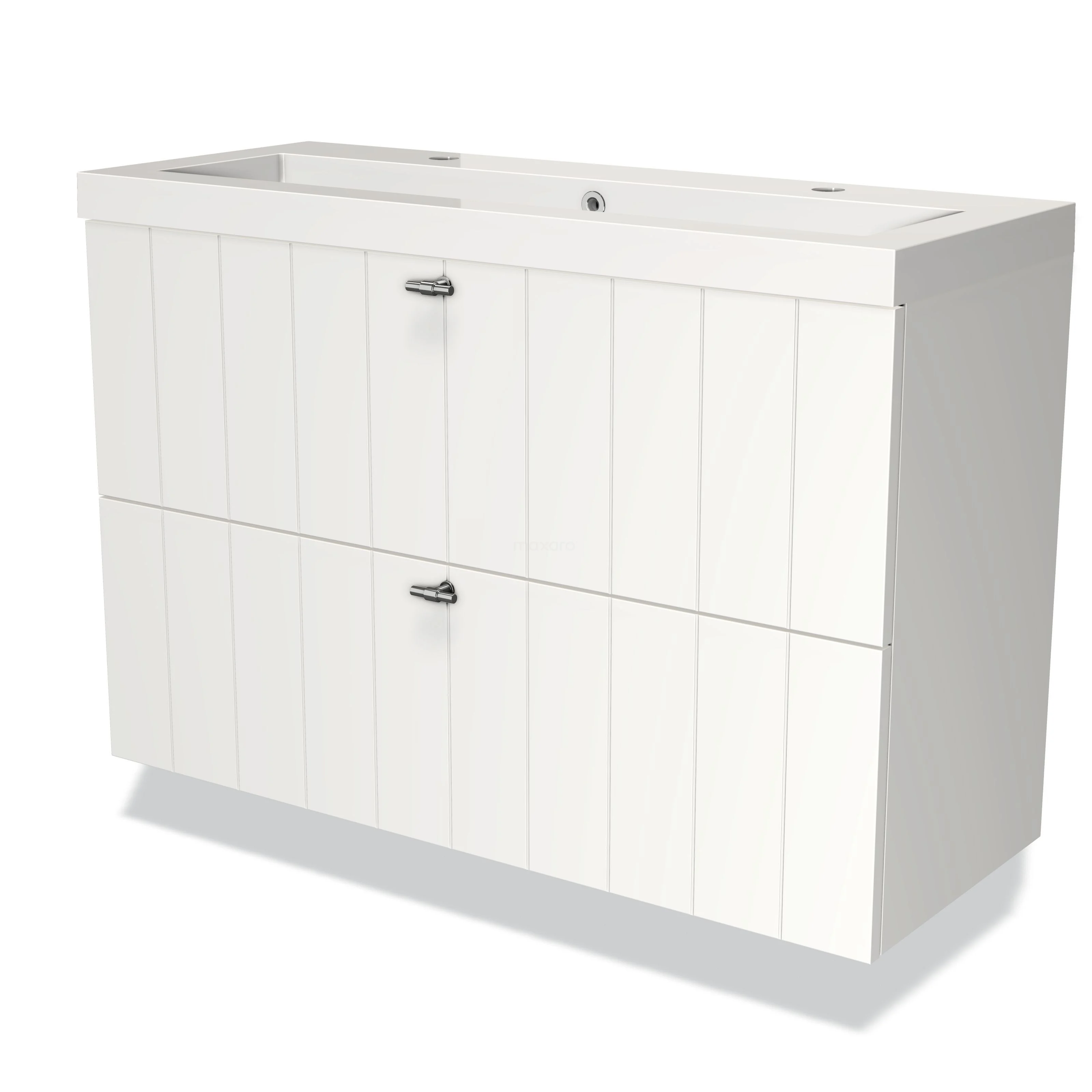 Stylish design Its stylish design makes this vanity unit the eye-catcher of your bathroom. The base cabinet features a slatted front and has a matte white finish. This colour has a modern appeal and gives the interior a fresh look-and-feel. In addition, the slatted front adds a rural touch. You need to add the handles yourself. These are available in different colours and shapes.
