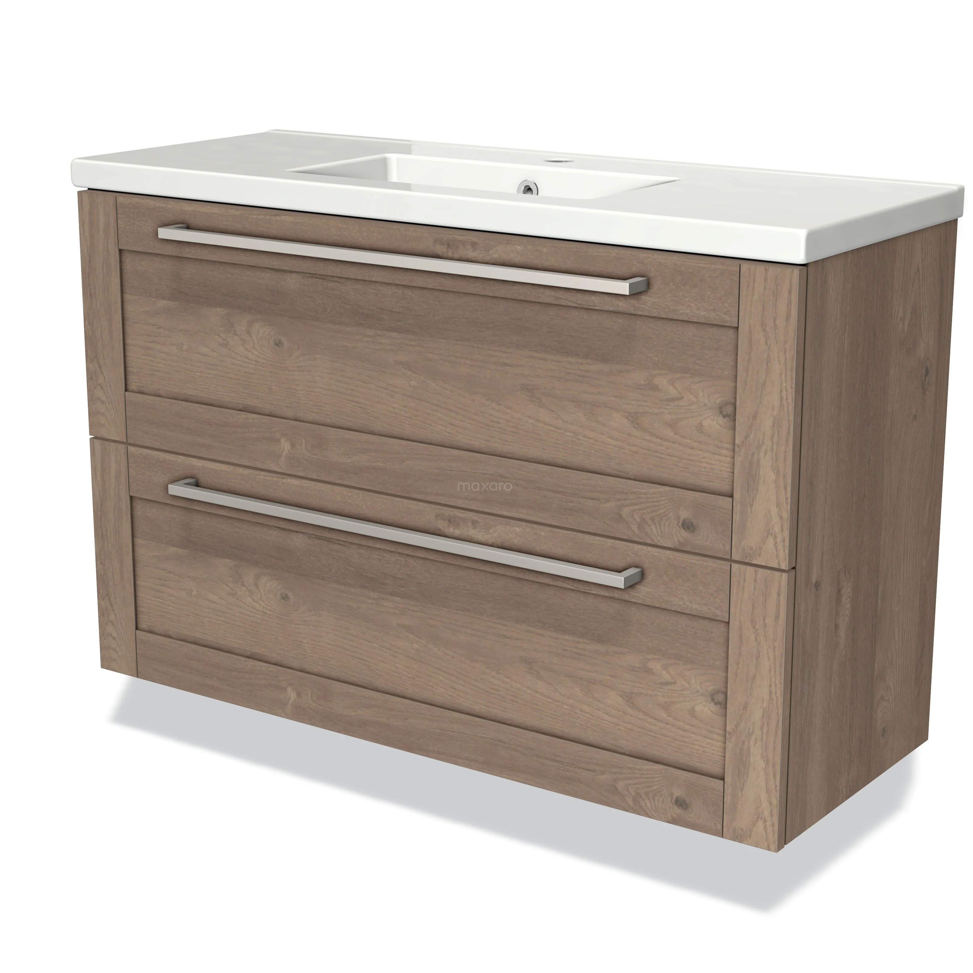 Modulo Slim Bathroom furniture with sink | 100 cm Mid brown oak Frame front Ceramic 2 Stacked drawers