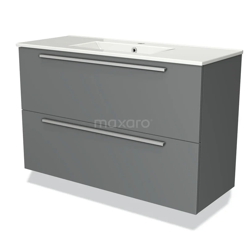 Modulo Slim Bathroom furniture with sink | 100 cm Mid grey Flat front Ceramic 2 Stacked drawers