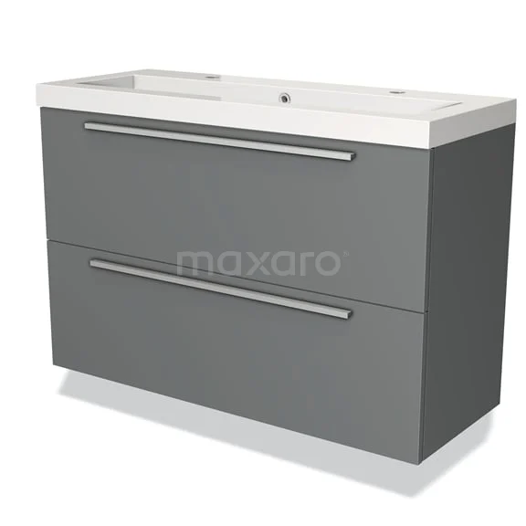 Modulo Slim Bathroom furniture with sink | 100 cm Mid grey Flat front Mineral marble 2 Stacked drawers