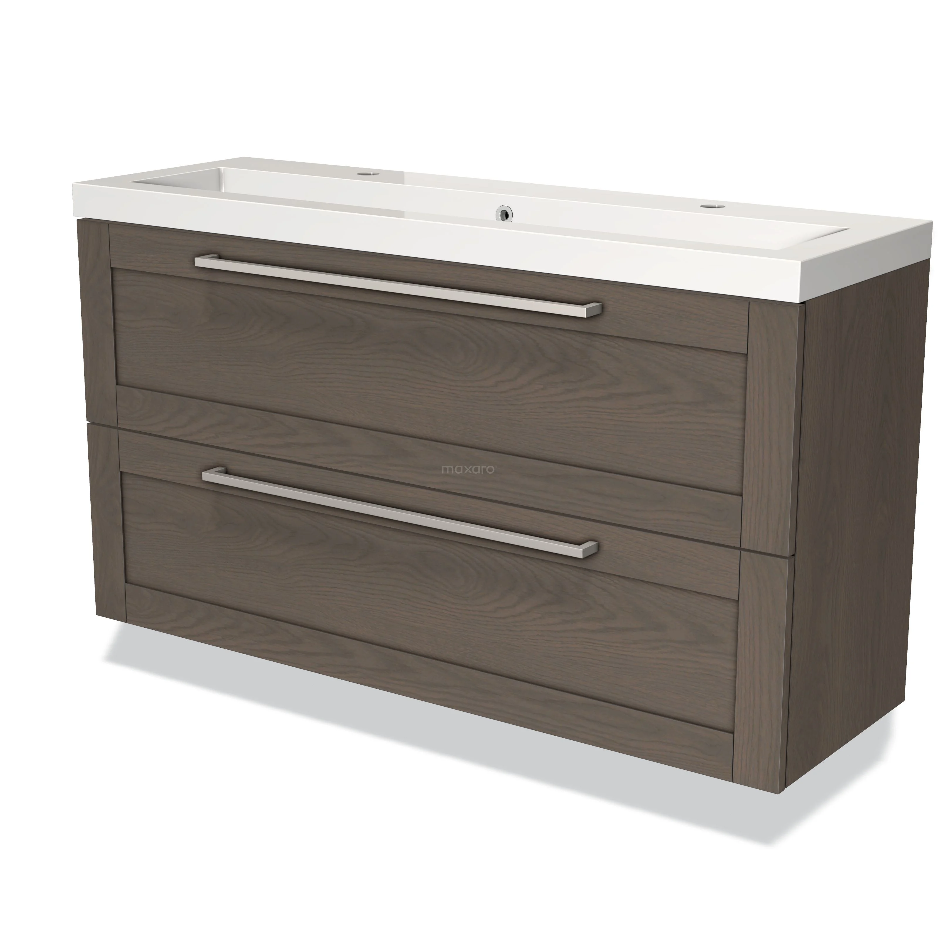 Modulo Slim Bathroom furniture with sink | 120 cm Dark brown oak Frame front Mineral marble 2 Stacked drawers