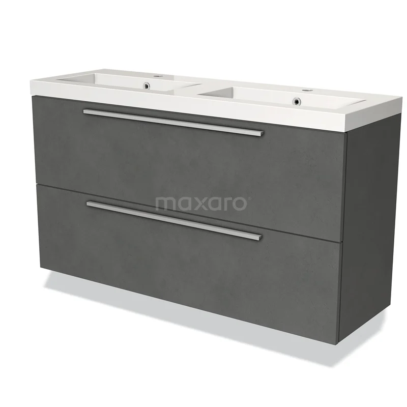Modulo Slim Bathroom furniture with sink | 120 cm Dark grey concrete Flat front Mineral marble 2 Stacked drawers