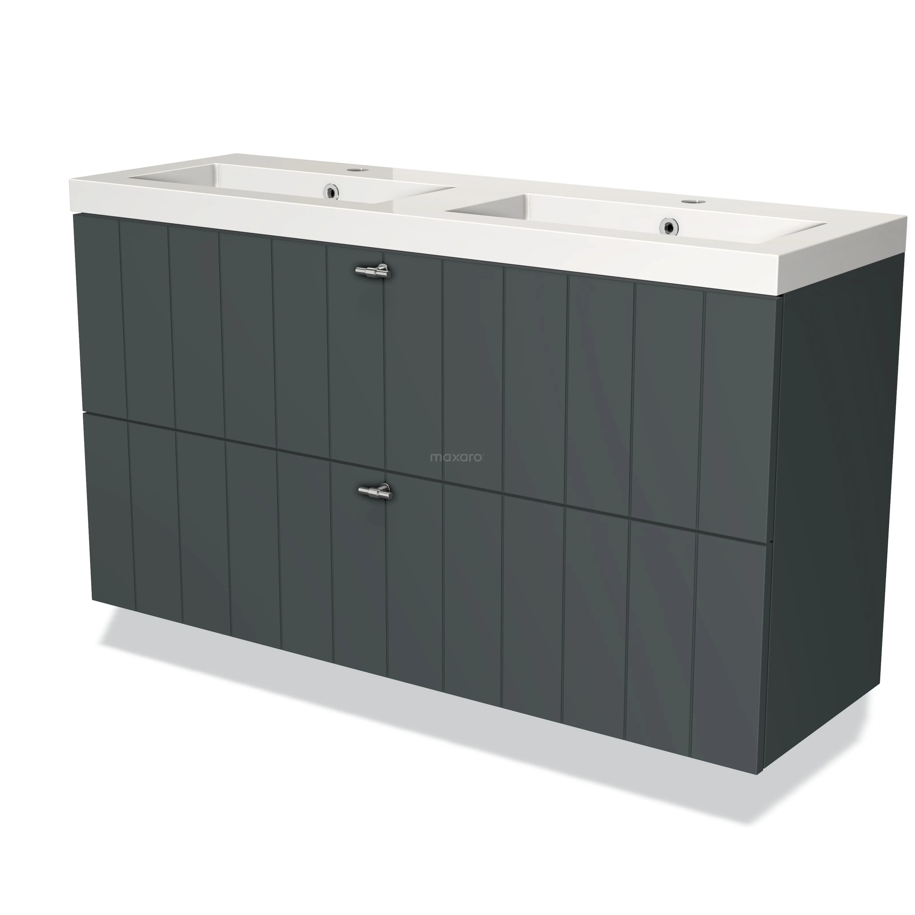 Modulo Slim Bathroom furniture with sink | 120 cm Dark grey Slat front Mineral marble 2 Stacked drawers