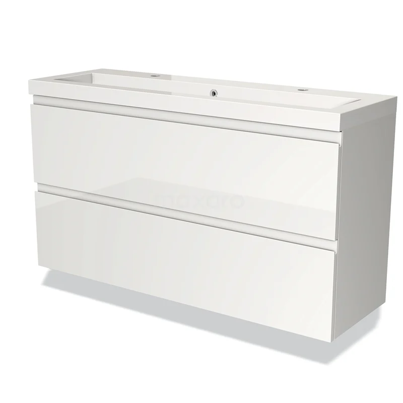 Modulo Slim Bathroom furniture with sink | 120 cm High-gloss white Handle-less front Mineral marble 2 Stacked drawers