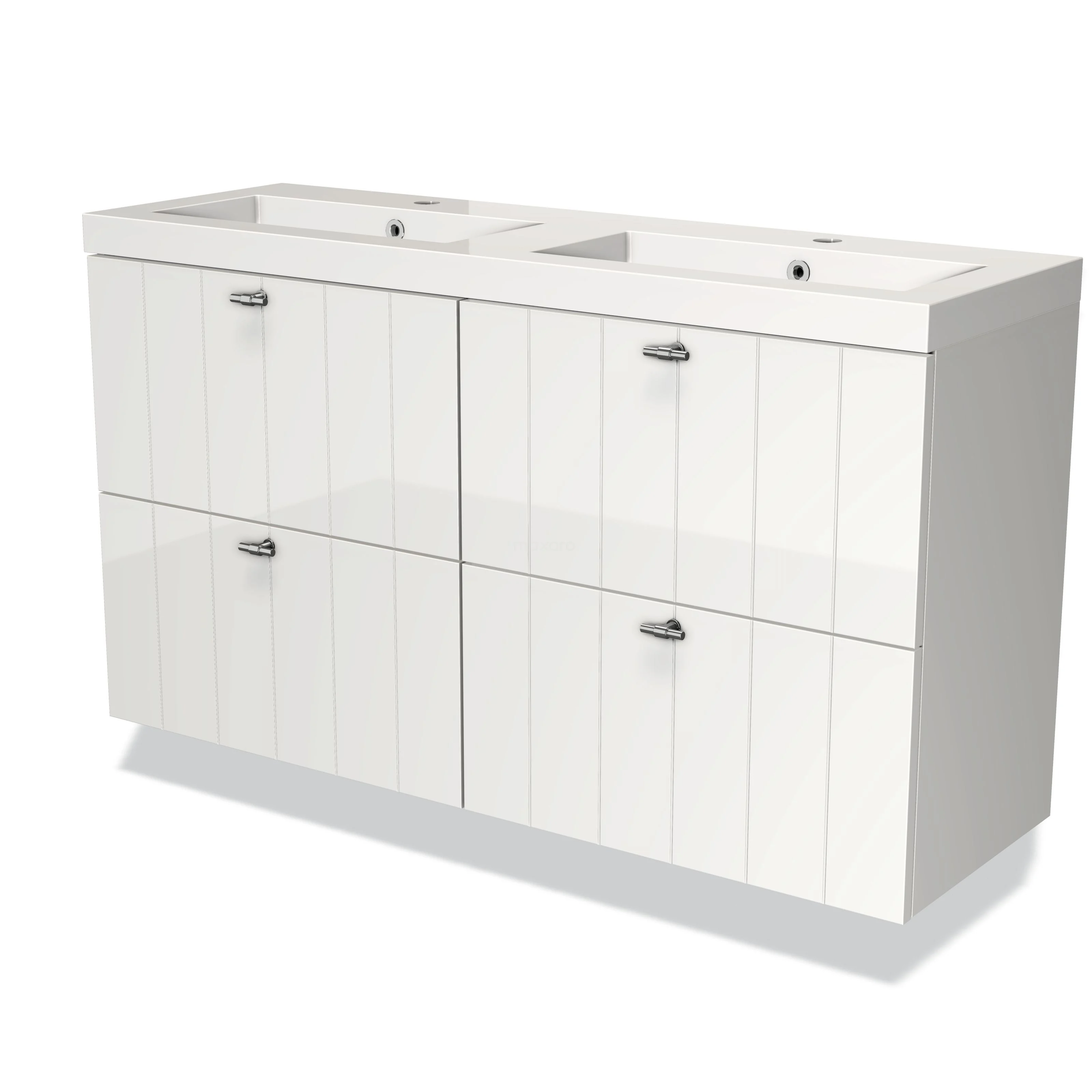 Modulo Slim Bathroom furniture with sink | 120 cm High-gloss white Slat front Mineral marble 4 drawers