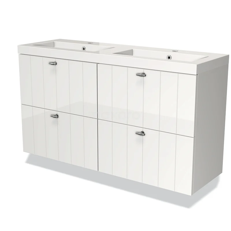 Stylish design The stylish design makes this bathroom unit the eye-catcher of your bathroom. The base cabinet features a slatted front and has a high-gloss white finish. This colour has a modern appeal and gives the unit a fresh look and feel. In addition, the slatted front adds a rural touch. You need to add the handles yourself. These are available in different colours and shapes.