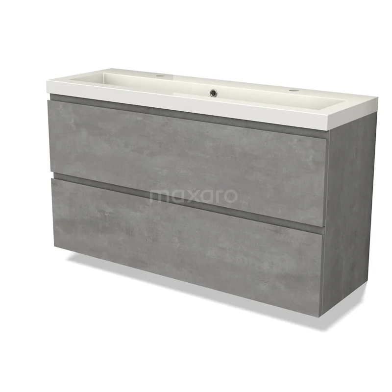 Modulo Slim Bathroom furniture with sink | 120 cm Light grey concrete Handle-less front Mineral marble 2 Stacked drawers