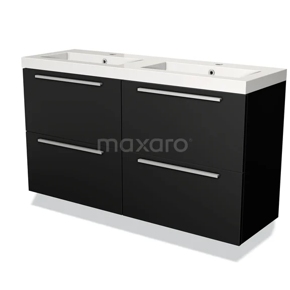 Modulo Slim Bathroom furniture with sink | 120 cm Matte black Flat front Mineral marble 4 drawers