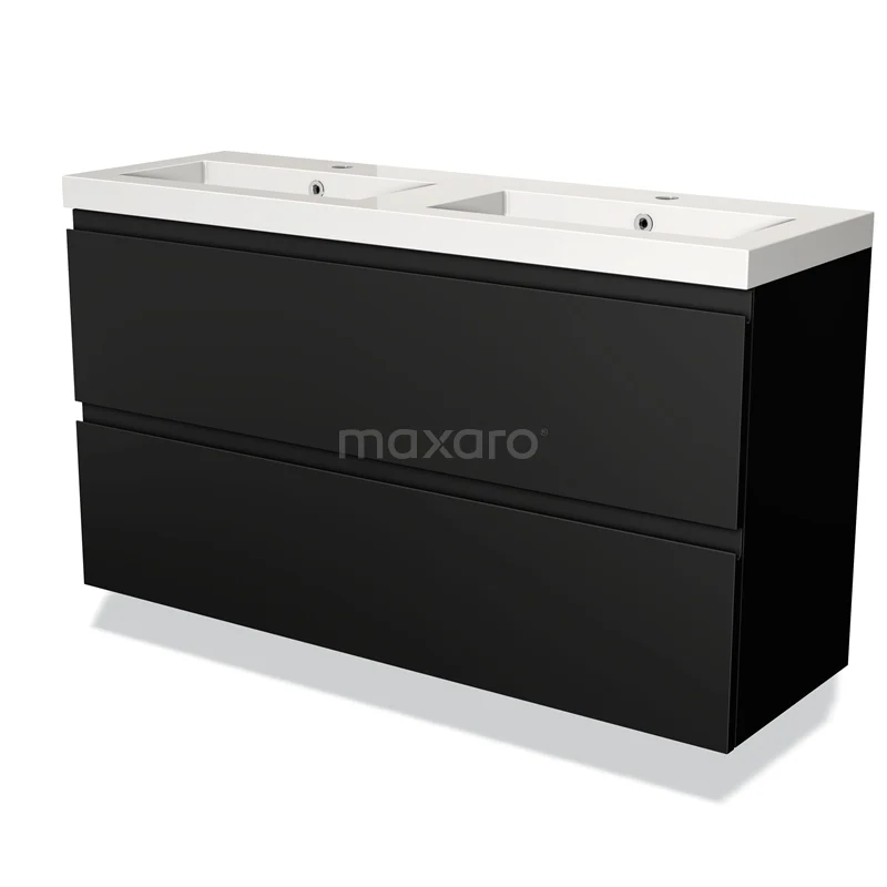 Modulo Slim Bathroom furniture with sink | 120 cm Matte black Handle-less front Mineral marble 2 Stacked drawers