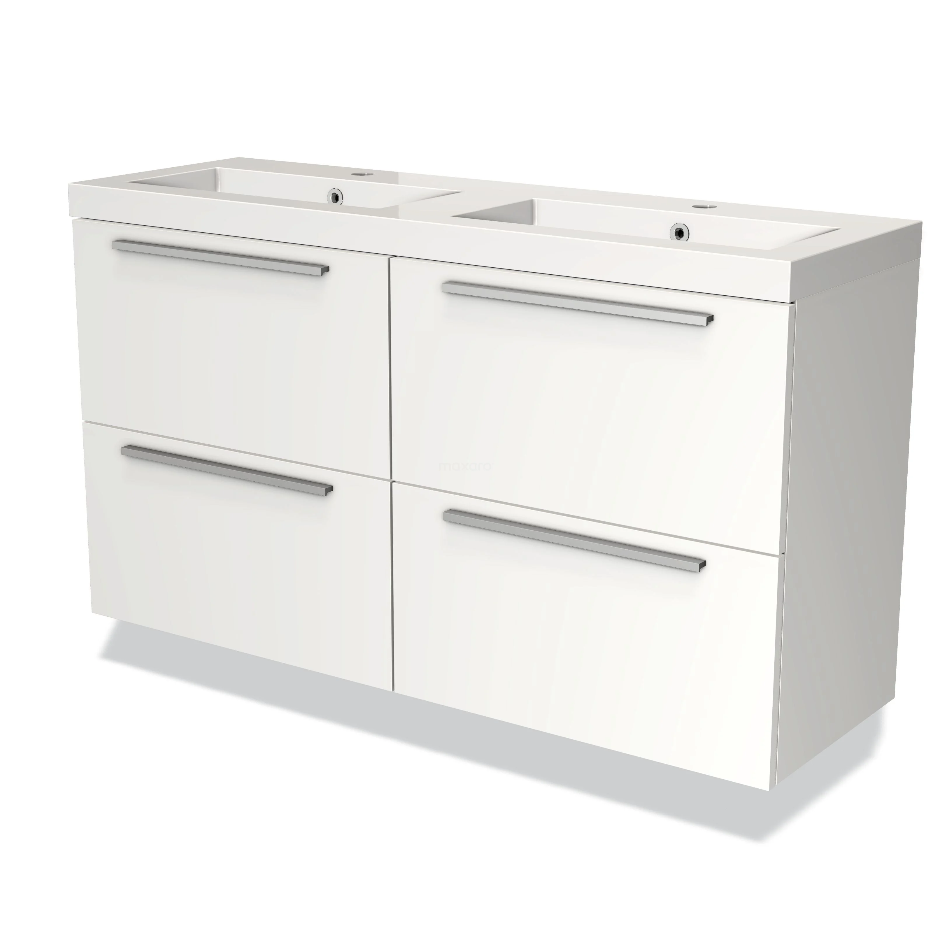 Modulo Slim Bathroom furniture with sink | 120 cm Matte white Flat front Mineral marble 4 drawers