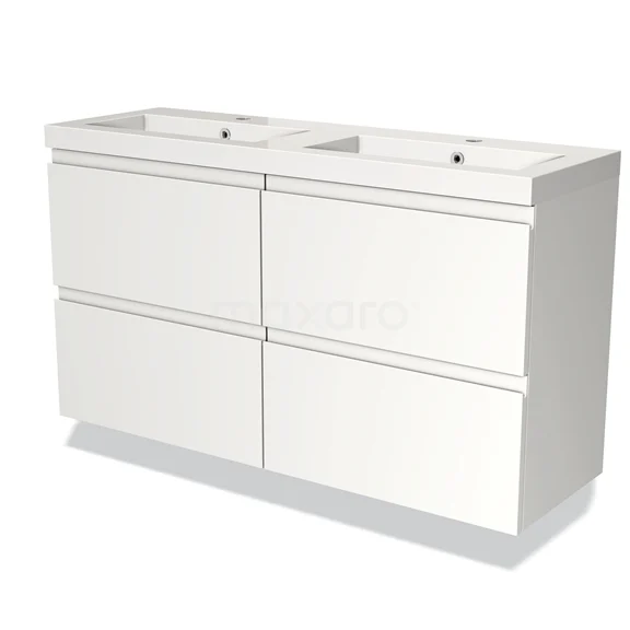 Modulo Slim Bathroom furniture with sink | 120 cm Matte white Handle-less front Mineral marble 4 drawers