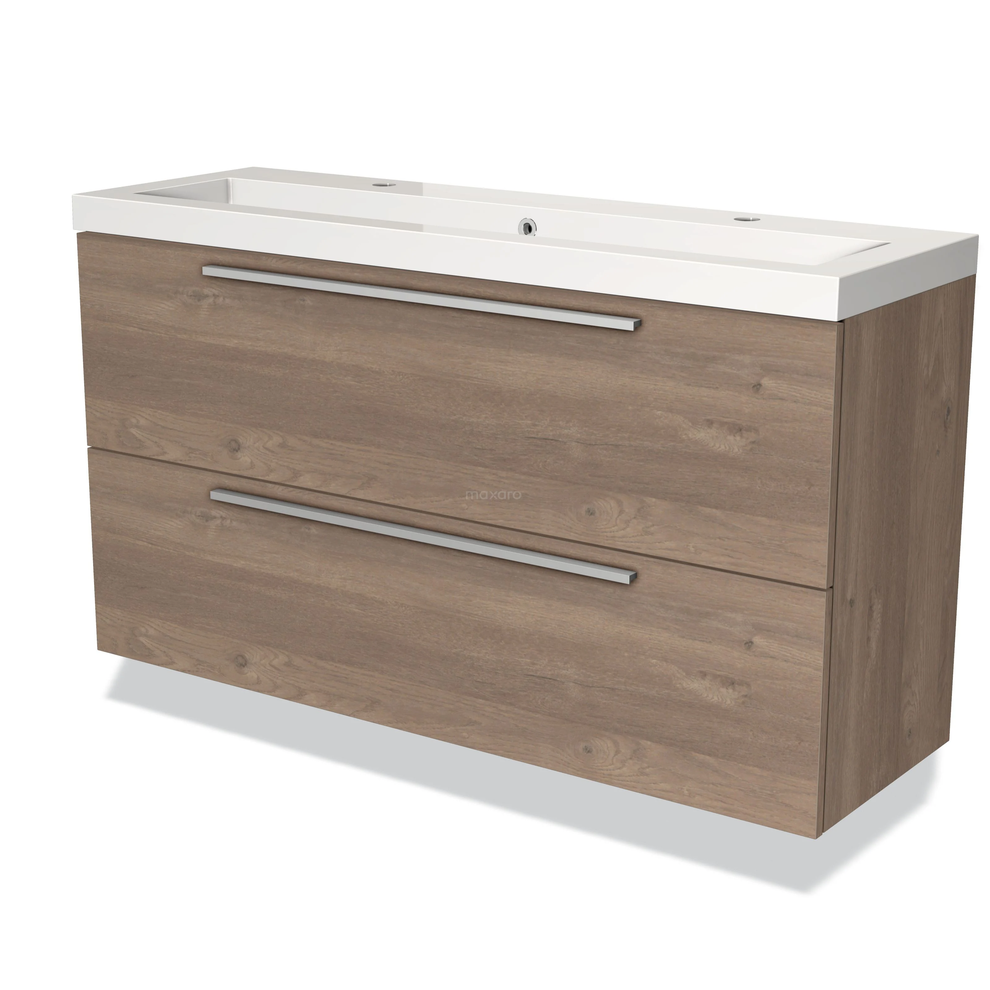 Stylish design The stylish design makes this bathroom unit the eye-catcher of your bathroom. The base cabinet features a flat front and has a mid brown oak finish. This beautiful oak look creates a warm atmosphere in your bathroom interior. In addition, the flat front provides a timeless touch. You will need to joint the handles yourself. These are available in different colours and shapes.