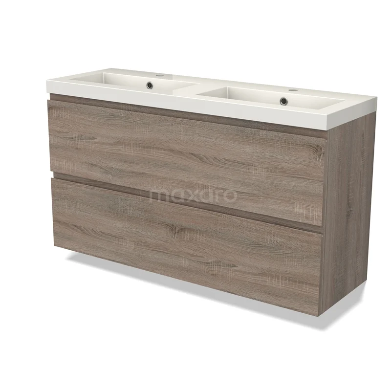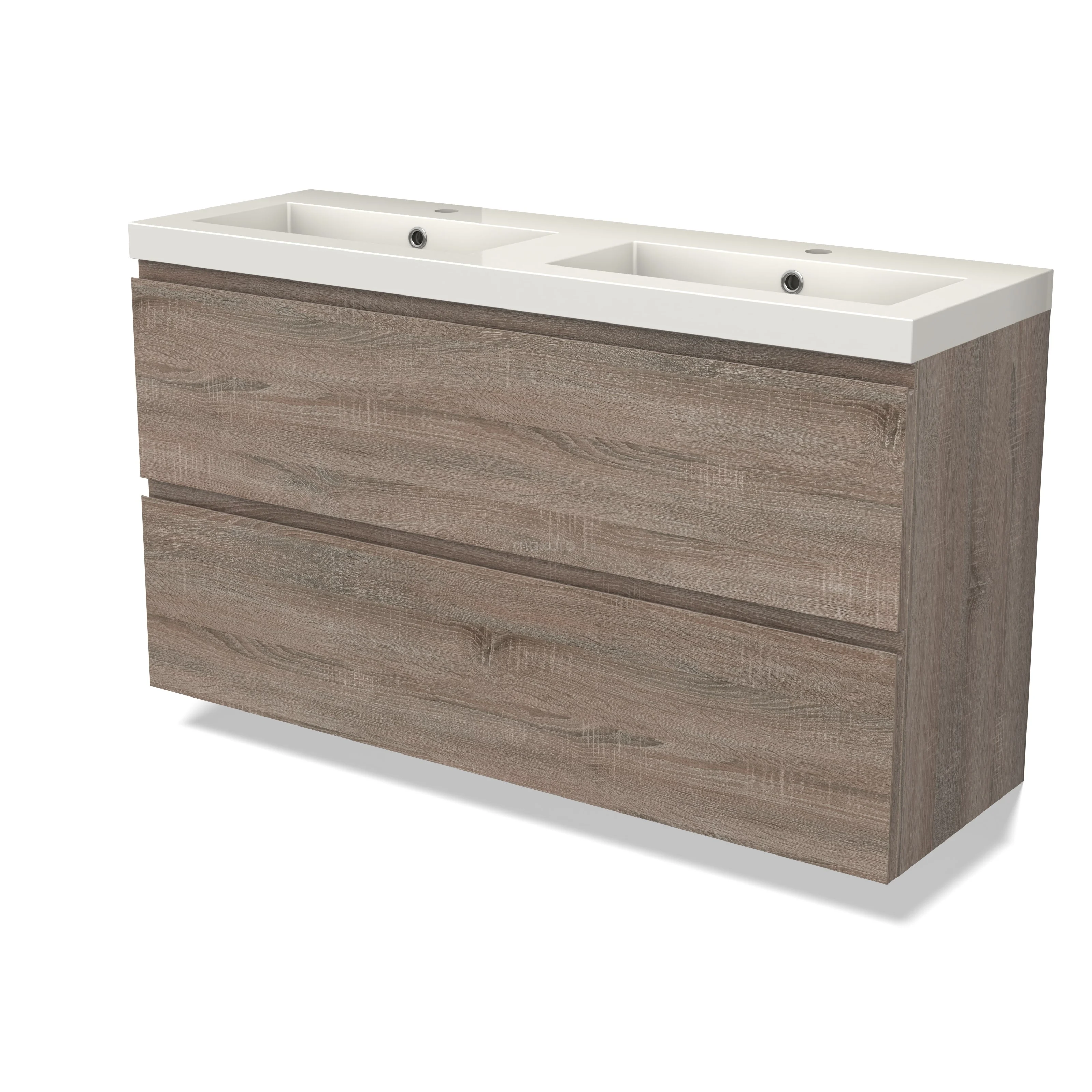 Modulo Slim Bathroom furniture with sink | 120 cm Oak Handle-less front Mineral marble 2 Stacked drawers