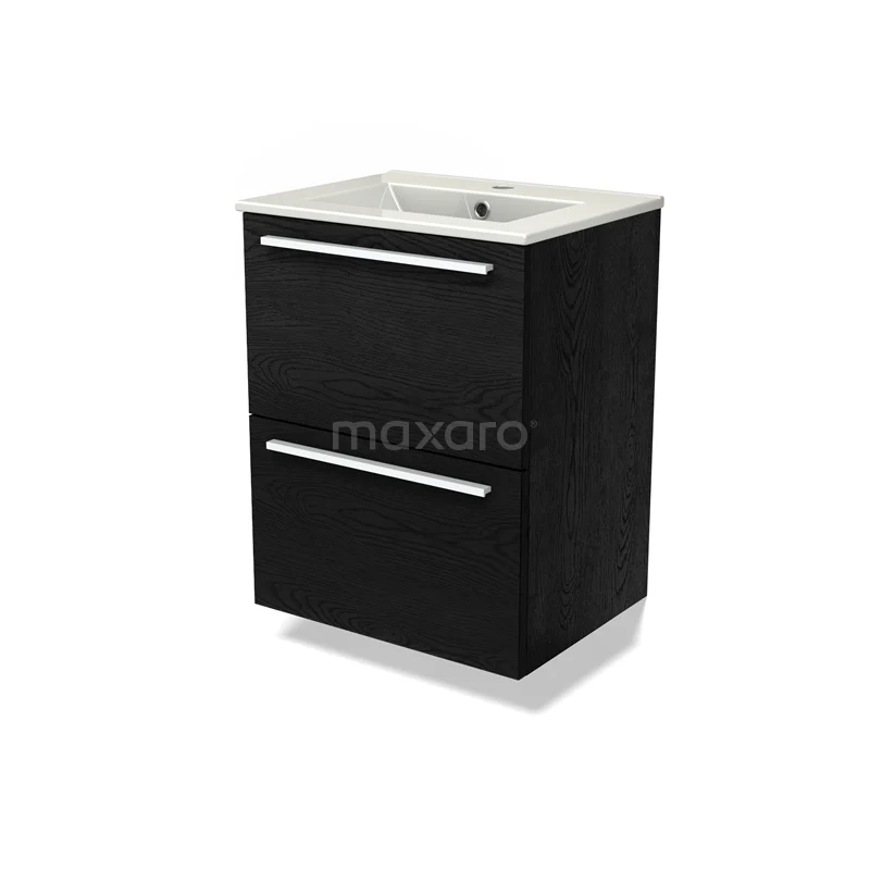 Modulo Slim Bathroom furniture with sink | 50 cm Black oak Flat front Ceramic 2 Stacked drawers