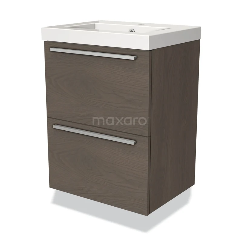 Stylish design Its stylish design makes this vanity unit the eye-catcher of your bathroom. The base cabinet features a flat front and has a dark brown oak finish. This beautiful oak look creates a warm atmosphere in your bathroom interior. In addition, the flat front provides a timeless touch. You will need to joint the handles yourself. These are available in different colours and shapes.