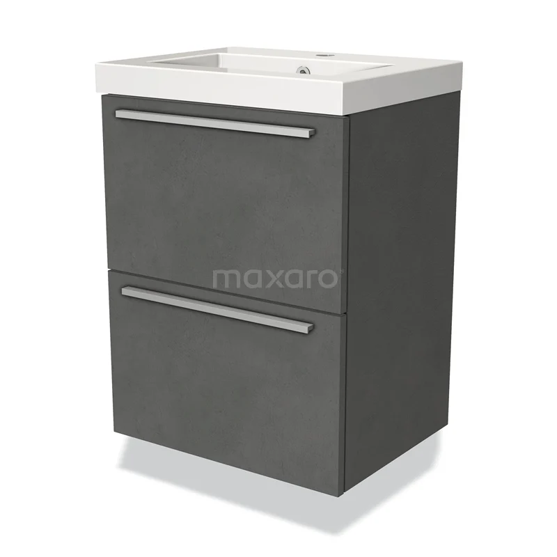 Modulo Slim Bathroom furniture with sink | 50 cm Dark grey concrete Flat front Mineral marble 2 Stacked drawers
