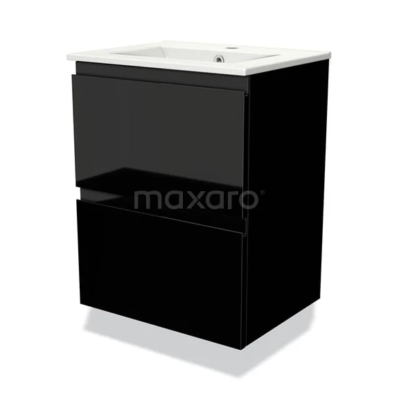 Modulo Slim Bathroom furniture with sink | 50 cm High-gloss black Handle-less front Ceramic 2 Stacked drawers