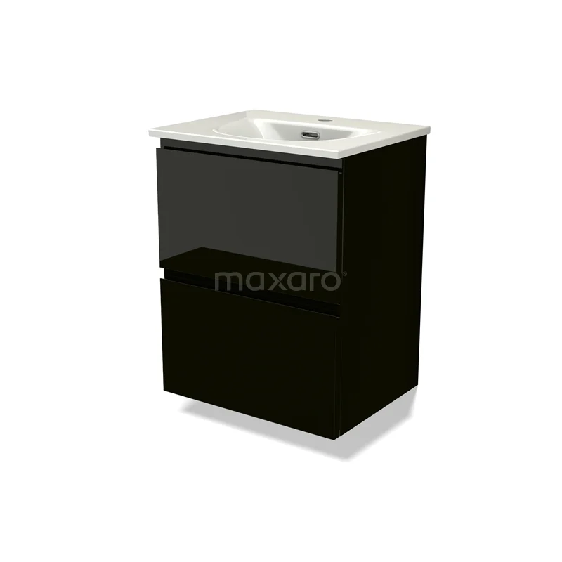 Modulo Slim Bathroom furniture with sink | 50 cm High-gloss black Handle-less front Ceramic 2 Stacked drawers