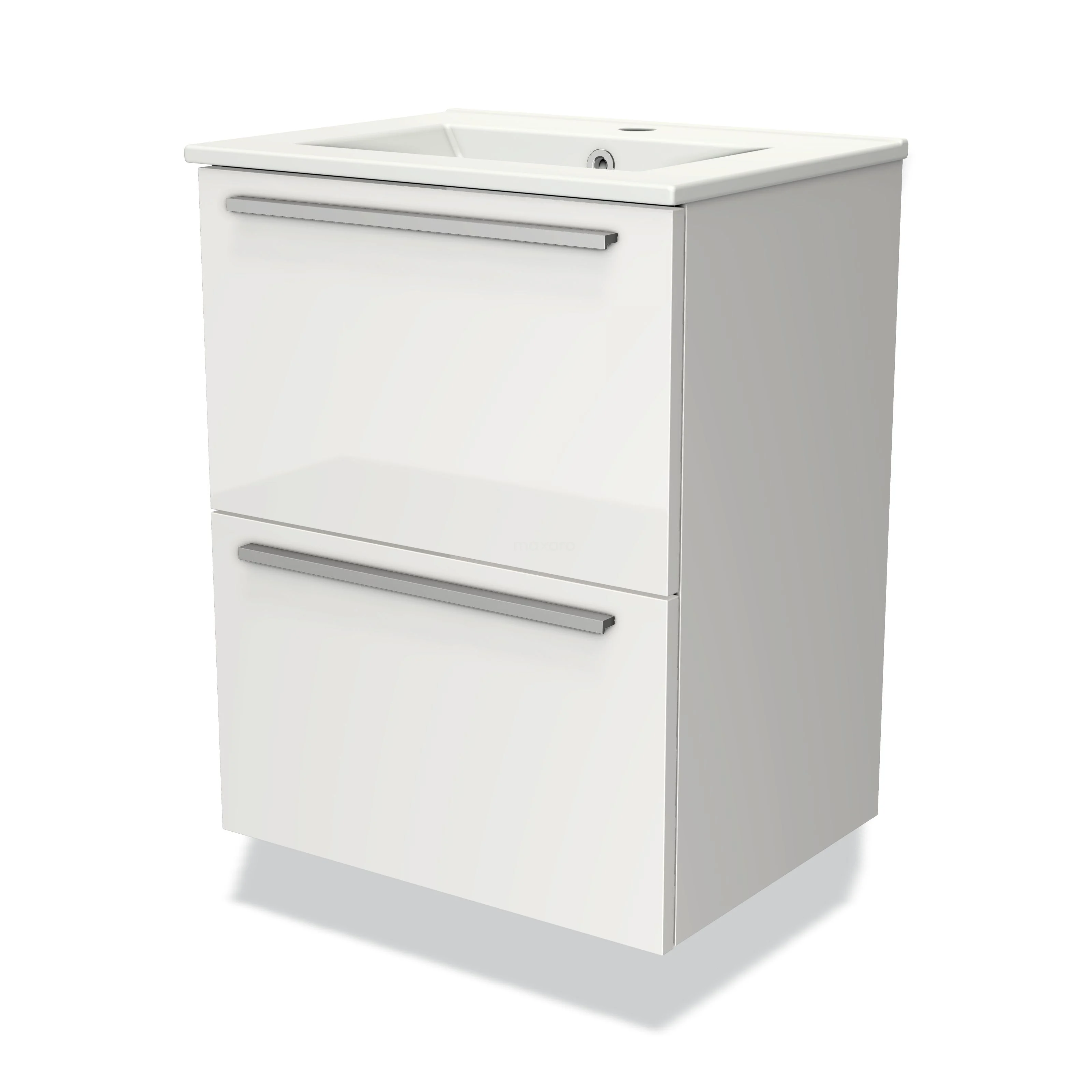 Modulo Slim Bathroom furniture with sink | 50 cm High-gloss white Flat front Ceramic 2 Stacked drawers