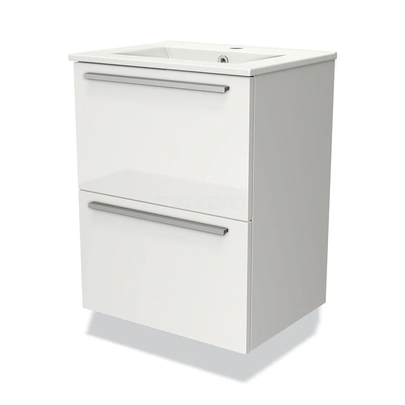 Stylish design The stylish design makes this bathroom unit the eye-catcher of your bathroom. The base cabinet features a flat front and has a high-gloss white finish. This colour has a modern appeal and gives the unit a fresh look and feel. In addition, the flat front provides a timeless touch. You need to add the handles yourself. These are available in different colours and shapes.