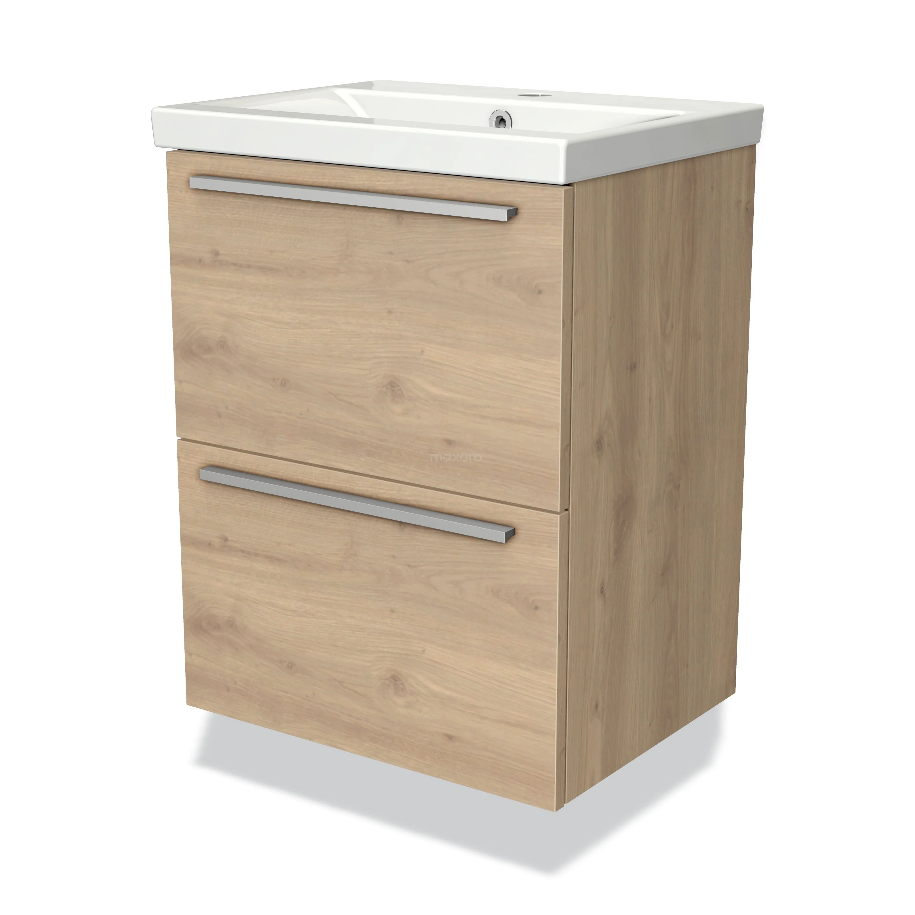 Modulo Slim Bathroom furniture with sink | 50 cm Light brown oak Flat front Ceramic 2 Stacked drawers