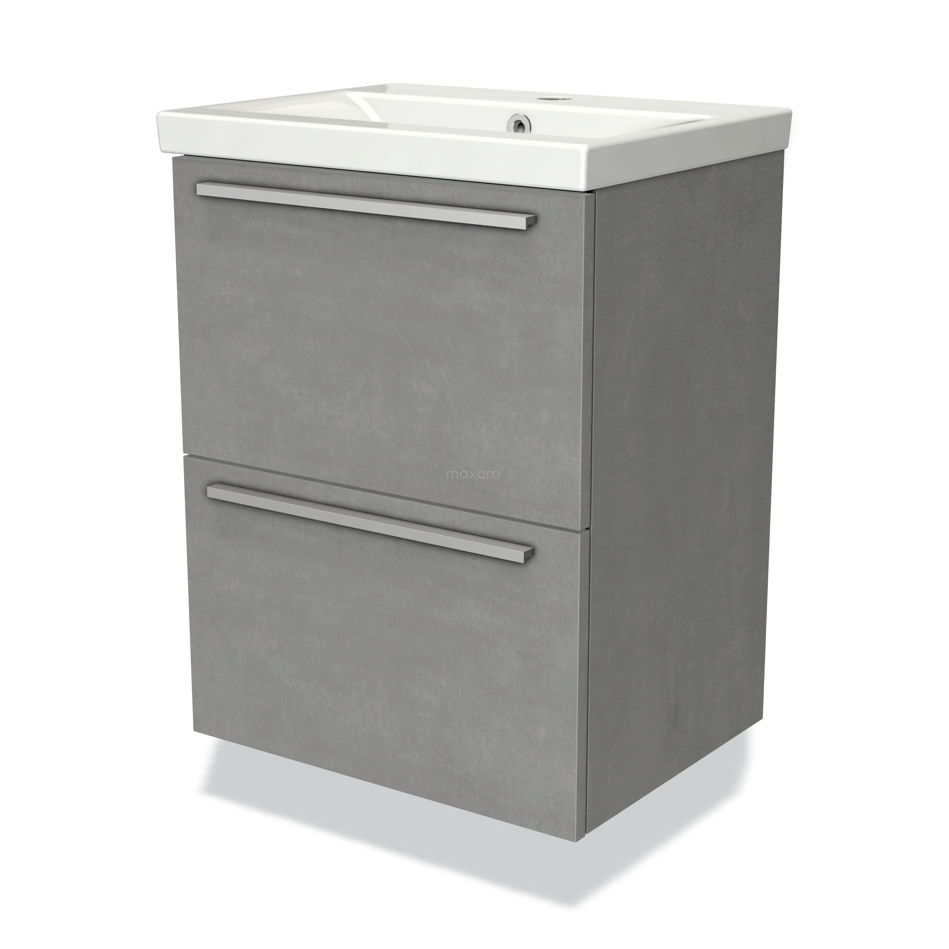 Modulo Slim Bathroom furniture with sink | 50 cm Light grey concrete Flat front Ceramic 2 Stacked drawers