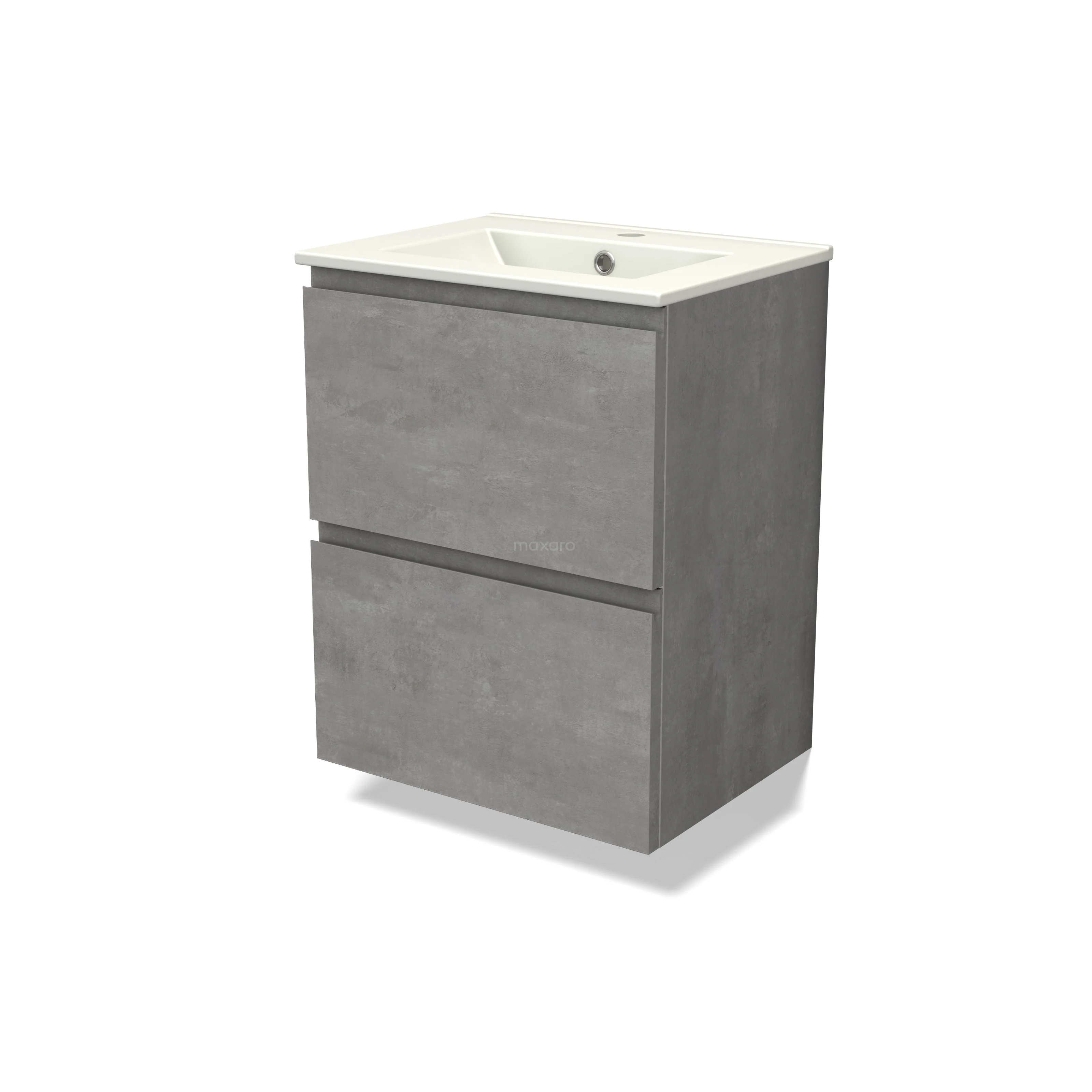 Modulo Slim Bathroom furniture with sink | 50 cm Light grey concrete Handle-less front Ceramic 2 Stacked drawers