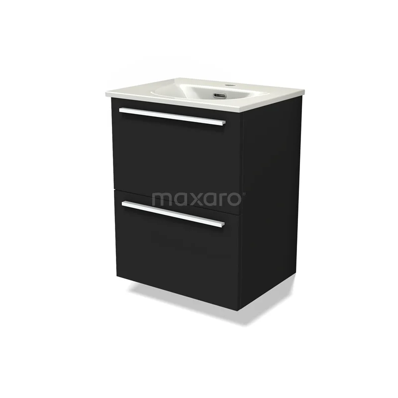 Modulo Slim Bathroom furniture with sink | 50 cm Matte black Flat front Ceramic 2 Stacked drawers