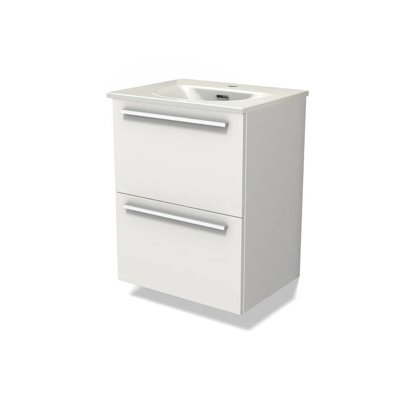 Modulo Slim Bathroom furniture with sink | 50 cm Matte white Flat front Ceramic 2 Stacked drawers