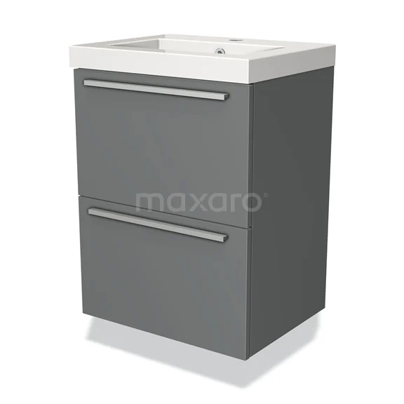 Modulo Slim Bathroom furniture with sink | 50 cm Mid grey Flat front Mineral marble 2 Stacked drawers